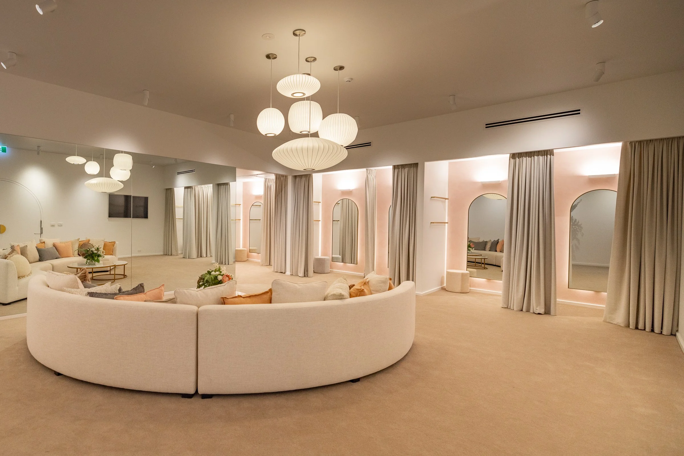 We were approached for this sumptuous fashion ‘luxe lounge’, to create a warm and elegant space dedicated to bringing a specialized shopping experience. The lighting creates the inviting and relaxing atmosphere, simultaneously enhancing client appearance each wardrobe change.